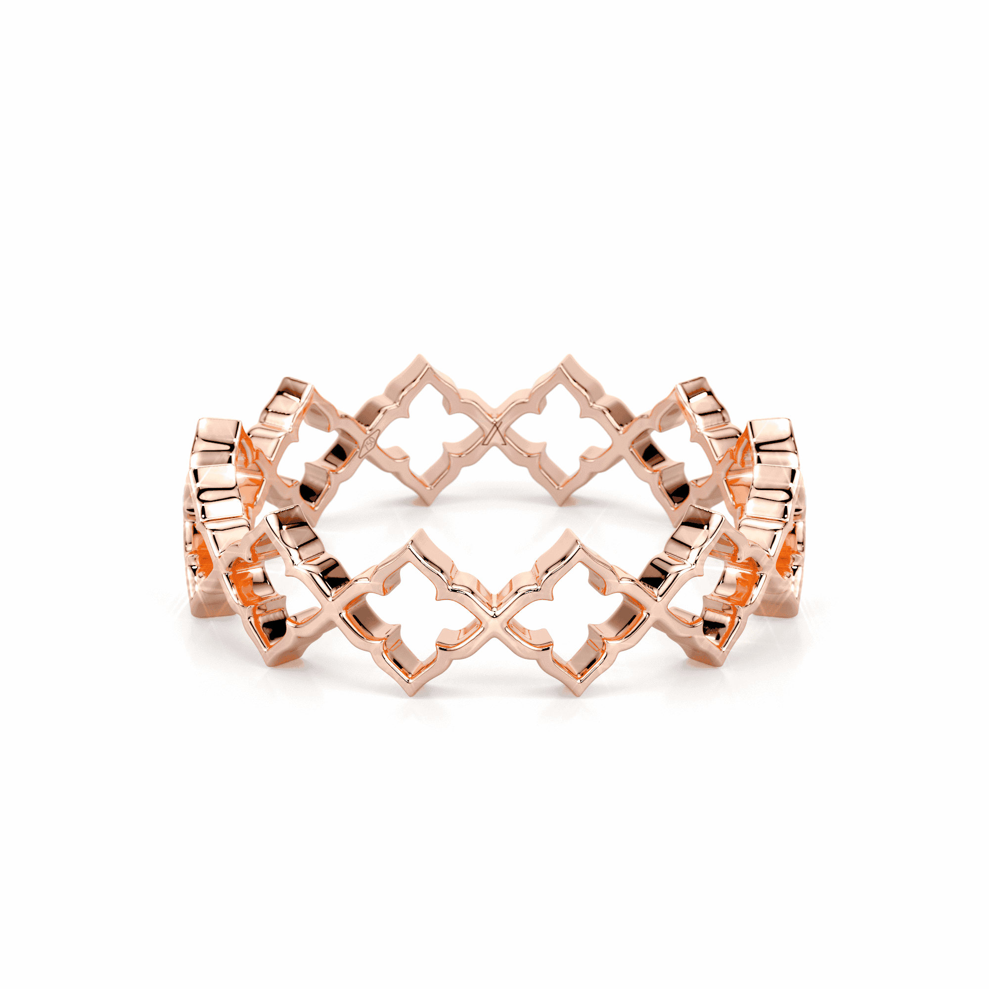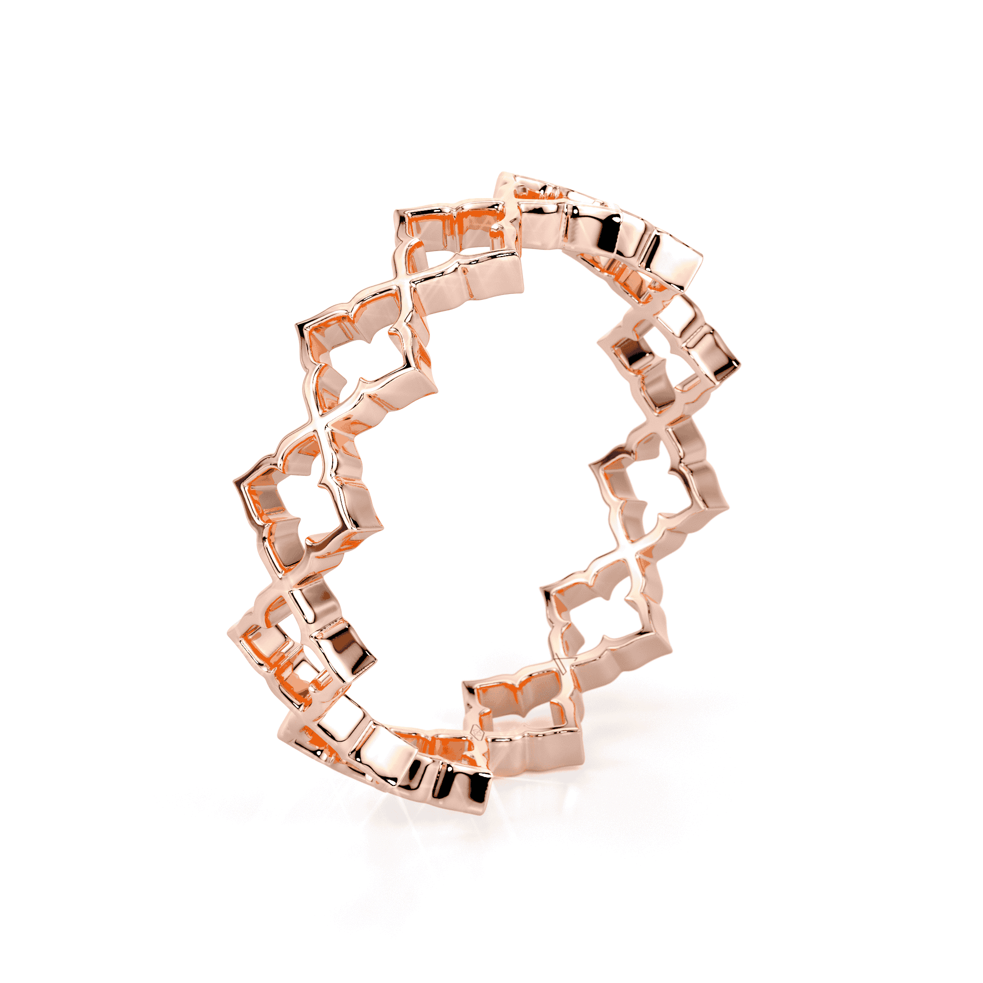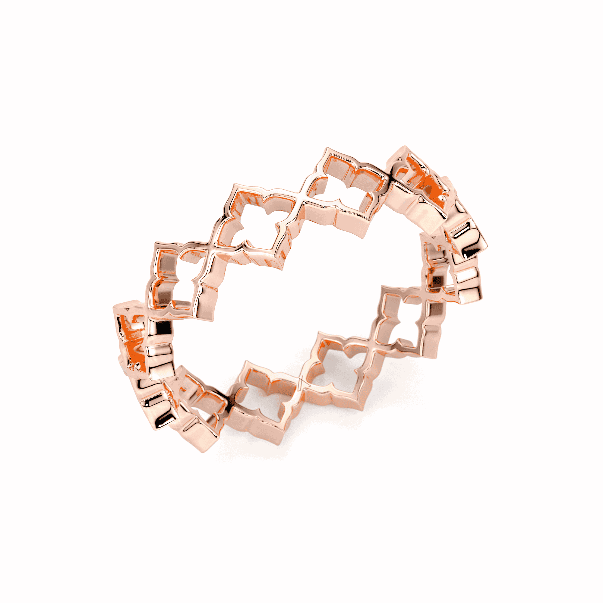 The open structure creates a sense of rhythm and fluidity, allowing the design to feel airy while remaining architectural. Polished gold surfaces enhance the clarity of each motif, making the ring ideal for everyday wear, stacking, or pairing with other Heritage pieces.
